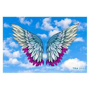 A impressão é feita em vinil adesivo. É um material lavável, impermeável, autocolante e antimofo. O produto cobre uma área de 3,50m, contando com 1,75 metro de altura por 2 metros de largura.
