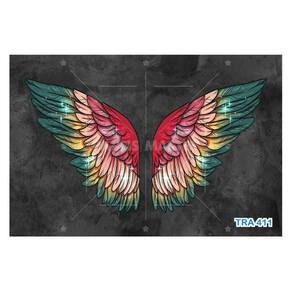 A impressão é feita em vinil adesivo. É um material lavável, impermeável, autocolante e antimofo. O produto cobre uma área de 3,50m, contando com 1,75 metro de altura por 2 metros de largura.
