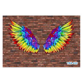A impressão é feita em vinil adesivo. É um material lavável, impermeável, autocolante e antimofo. O produto cobre uma área de 3,50m, contando com 1,75 metro de altura por 2 metros de largura.