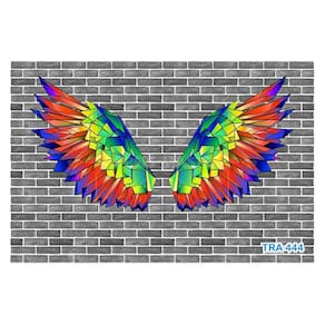 A impressão é feita em vinil adesivo. É um material lavável, impermeável, autocolante e antimofo. O produto cobre uma área de 3,50m, contando com 1,75 metro de altura por 2 metros de largura.