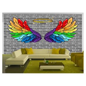A impressão é feita em vinil adesivo. É um material lavável, impermeável, autocolante e antimofo. O produto cobre uma área de 3,50m, contando com 1,75 metro de altura por 2 metros de largura.