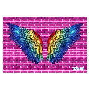 A impressão é feita em vinil adesivo. É um material lavável, impermeável, autocolante e antimofo. O produto cobre uma área de 3,50m, contando com 1,75 metro de altura por 2 metros de largura.