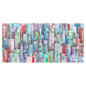 A impressão é feita em vinil adesivo. É um material lavável, impermeável, autocolante e antimofo. O produto cobre uma área de 3,50m, contando com 1,75 metro de altura por 2 metros de largura.