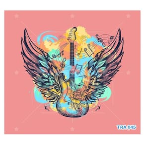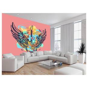Papel De Parede 3D Arte Guitarra Asas Colorido 3,5M Tra45