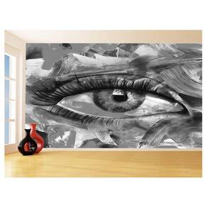 Papel De Parede 3D Arte Olho Preto Branco Rosto 3,5M Tra136