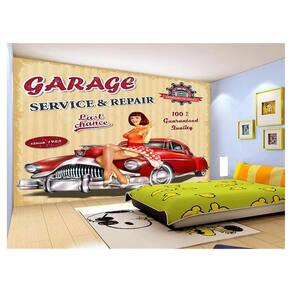 Papel De Parede 3D Carro Antigo Hot Rod Pin Up 3,5M Cxr80