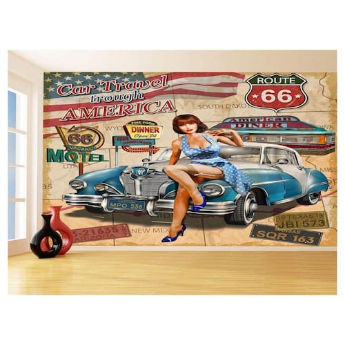 Papel De Parede 3D Carro Antigo Hot Rod Pin Up 3,5M Cxr93