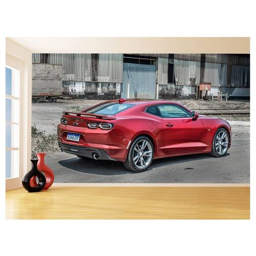 Papel De Parede 3D Carro Camaro Chevy Vermelho 3,5M Car51