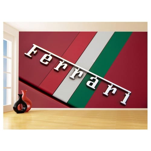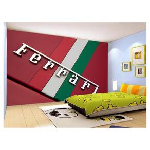 Papel De Parede 3D Carro Ferrari Vermelha Logo 3,5M Car156