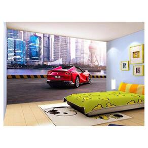 Papel De Parede 3D Carro Ferrari Vermelha Pista 3,5M Car116