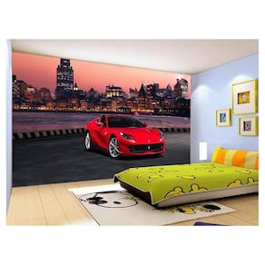 Papel De Parede 3D Carro Ferrari Vermelha Pista 3,5M Car117
