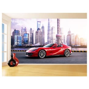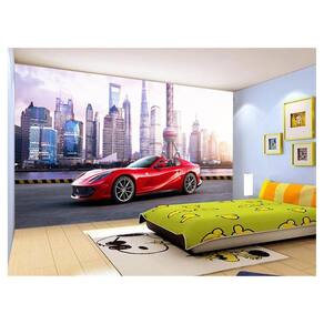Papel De Parede 3D Carro Ferrari Vermelha Pista 3,5M Car118