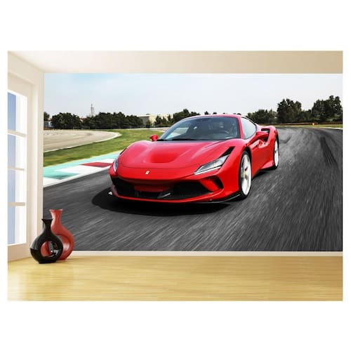 Papel De Parede 3D Carro Ferrari Vermelha Pista 3,5M Car126