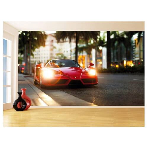 Papel De Parede 3D Carro Ferrari Vermelha Pista 3,5M Car165