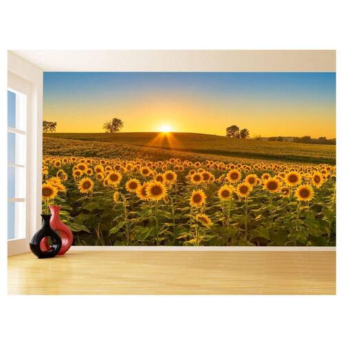 Papel De Parede 3D Céu Azul Girassol Por Do Sol 3,5M Nsk124