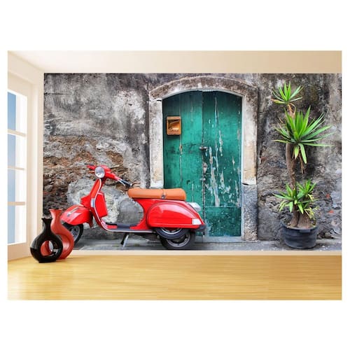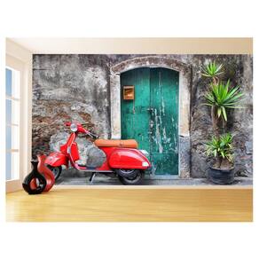 Papel De Parede 3D Cidade Européia Retrô Vespa 3,5M Ncd366
