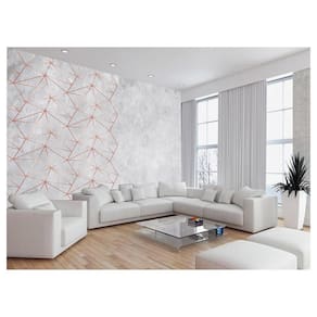 Papel De Parede 3D Concreto Linhas Dourado Rose 3,5M Kkt199