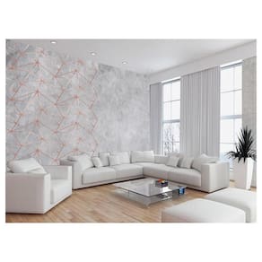 Papel De Parede 3D Concreto Linhas Dourado Rose 3,5M Kkt203