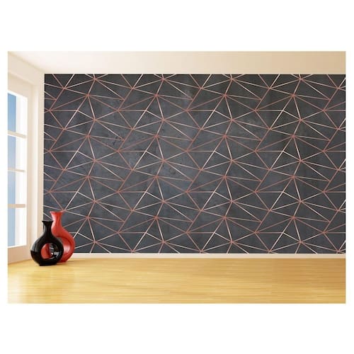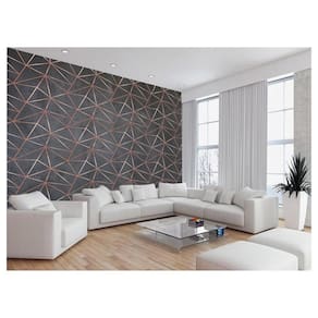 Papel De Parede 3D Concreto Linhas Dourado Rose 3,5M Kkt214