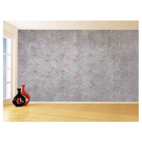 Papel De Parede 3D Concreto Linhas Dourado Rose 3,5M Kkt218