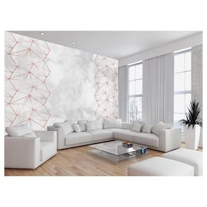 Papel De Parede 3D Concreto Linhas Dourado Rose 3,5M Kkt229