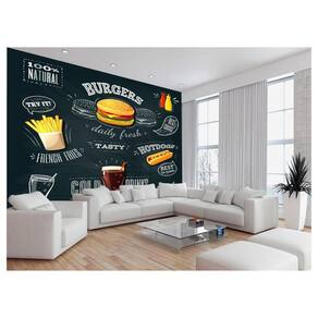 A impressão é feita em vinil adesivo. É um material lavável, impermeável, autocolante e antimofo. O produto cobre uma área de 3,50m, contando com 1,75 metro de altura por 2 metros de largura.