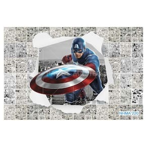 A impressão é feita em vinil adesivo. É um material lavável, impermeável, autocolante e antimofo. O produto cobre uma área de 3,50m, contando com 1,75 metro de altura por 2 metros de largura.