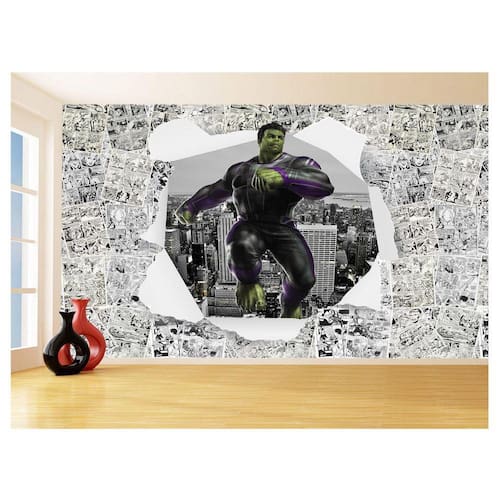 A impressão é feita em vinil adesivo. É um material lavável, impermeável, autocolante e antimofo. O produto cobre uma área de 3,50m, contando com 1,75 metro de altura por 2 metros de largura.