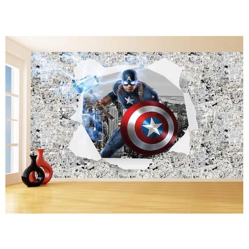 A impressão é feita em vinil adesivo. É um material lavável, impermeável, autocolante e antimofo. O produto cobre uma área de 3,50m, contando com 1,75 metro de altura por 2 metros de largura.