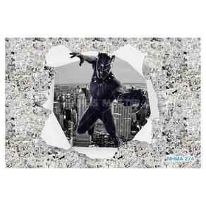 A impressão é feita em vinil adesivo. É um material lavável, impermeável, autocolante e antimofo. O produto cobre uma área de 3,50m, contando com 1,75 metro de altura por 2 metros de largura.