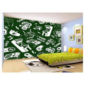 A impressão é feita em vinil adesivo. É um material lavável, impermeável, autocolante e antimofo. O produto cobre uma área de 3,50m, contando com 1,75 metro de altura por 2 metros de largura.