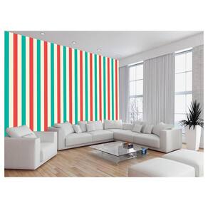 Papel De Parede 3D Listras Vermelho Bege Verde 3,5M Lst52
