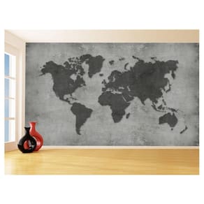 Papel De Parede 3D Mapa Mundi Cimento Concreto 3,5M Nmu28