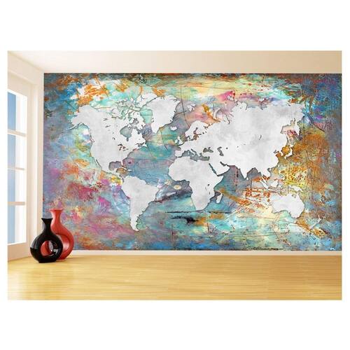 Papel De Parede 3D Mapa Mundi Ferrugem Cimento 3,5M Nmu27