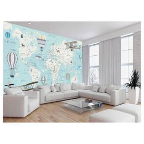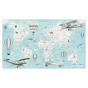 Papel De Parede 3D Mapa Mundi Kids Avião Balão 3,5M Nmu89