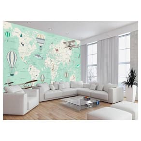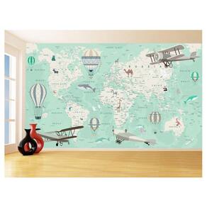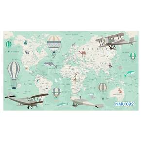 Papel De Parede 3D Mapa Mundi Kids Avião Balão 3,5M Nmu92