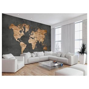 Papel De Parede 3D Mapa Mundi Madeira Concreto 3,5M Nmu35