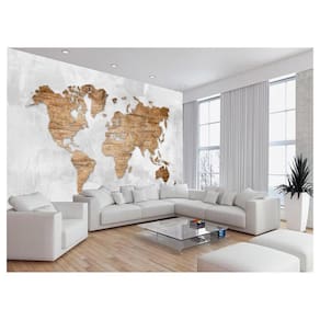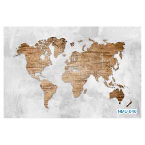 Papel De Parede 3D Mapa Mundi Madeira Concreto 3,5M Nmu40