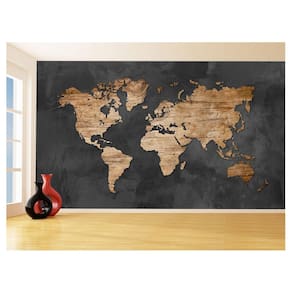 Papel De Parede 3D Mapa Mundi Madeira Concreto 3,5M Nmu49