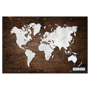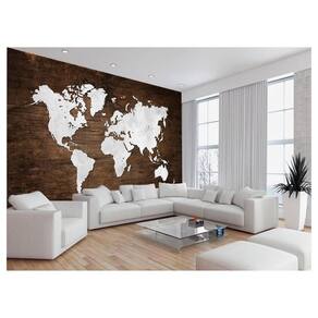 Papel De Parede 3D Mapa Mundi Madeira Concreto 3,5M Nmu66