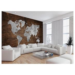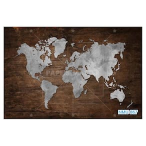 Papel De Parede 3D Mapa Mundi Madeira Concreto 3,5M Nmu67
