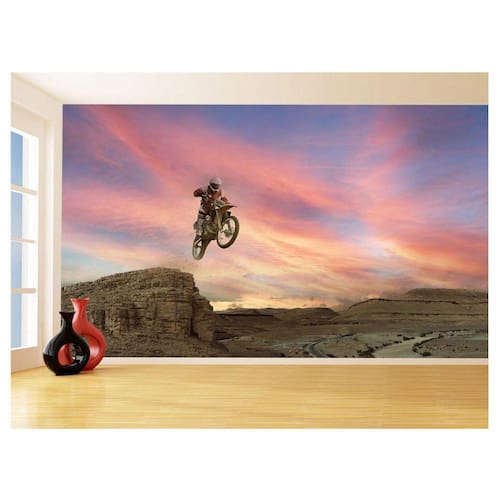 A impressão é feita em vinil adesivo. É um material lavável, impermeável, autocolante e antimofo. O produto cobre uma área de 3,50m, contando com 1,75 metro de altura por 2 metros de largura.