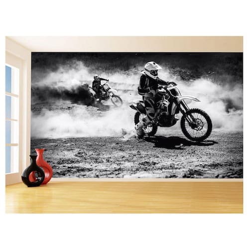 A impressão é feita em vinil adesivo. É um material lavável, impermeável, autocolante e antimofo. O produto cobre uma área de 3,50m, contando com 1,75 metro de altura por 2 metros de largura.