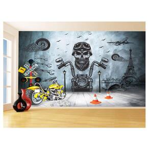 Papel De Parede 3D Moto Custom Chopper Viagem 3,5M Bkm135