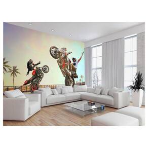 A impressão é feita em vinil adesivo. É um material lavável, impermeável, autocolante e antimofo. O produto cobre uma área de 3,50m, contando com 1,75 metro de altura por 2 metros de largura.
