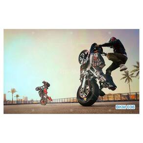 Papel De Parede 3D Moto Grau Empinando Manobra 3,5M Bkm36