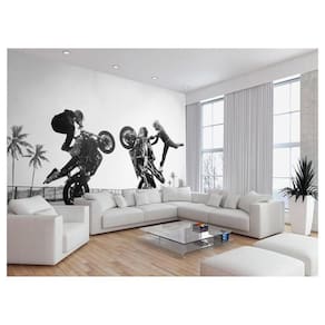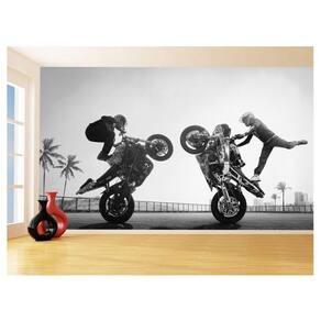Papel De Parede 3D Moto Grau Empinando Manobra 3,5M Bkm43