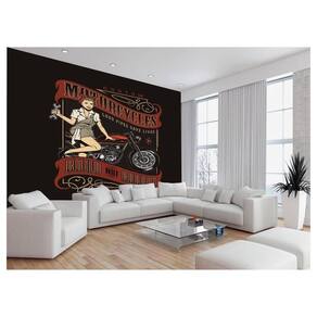 Papel De Parede 3D Moto Retrô Arte Pinup Custom 3,5M Bkm136
