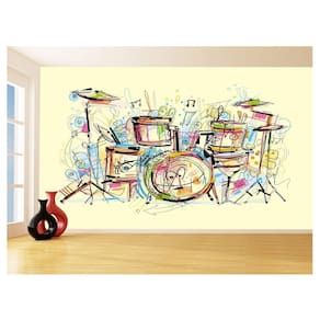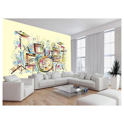 Papel De Parede 3D Musica Bateria Arte Desenho 3,5M Mus82