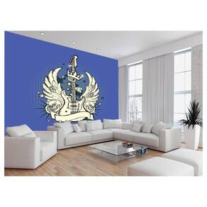 Papel De Parede 3D Musica Guitarra Arte Graffiti 3,5M Mus79